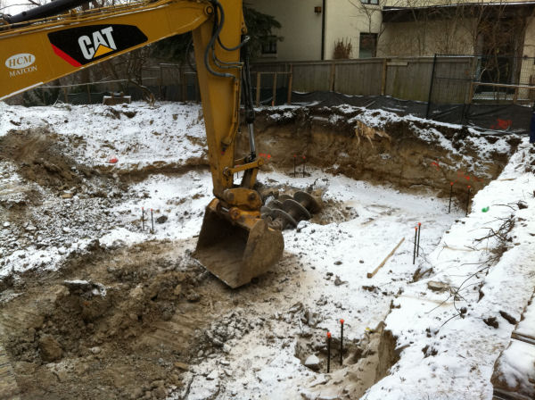 RWH designed a cantilever piles and lagging shoring system. The shoring was used as a back form for the building’s foundation wall in order to maximize the distance between the shoring and the trees. The one-sided forming also reduced the amount of excavation required within the site. As the cantilever system is not supported by rakers, the need for box-outs through the foundation wall was eliminated.